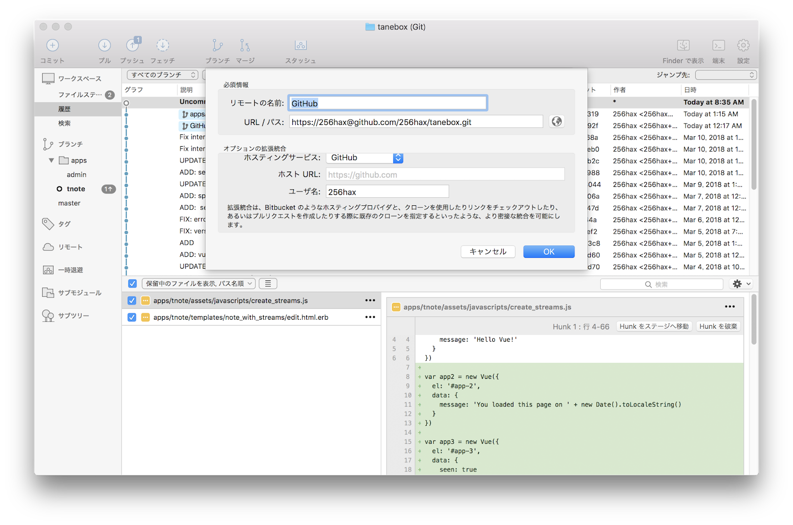 - キーチェーンは アプリケーション > ユーティリティ > キーチェーン > (ログインメニュー選択)GitHub Credentials で存在を確認できる